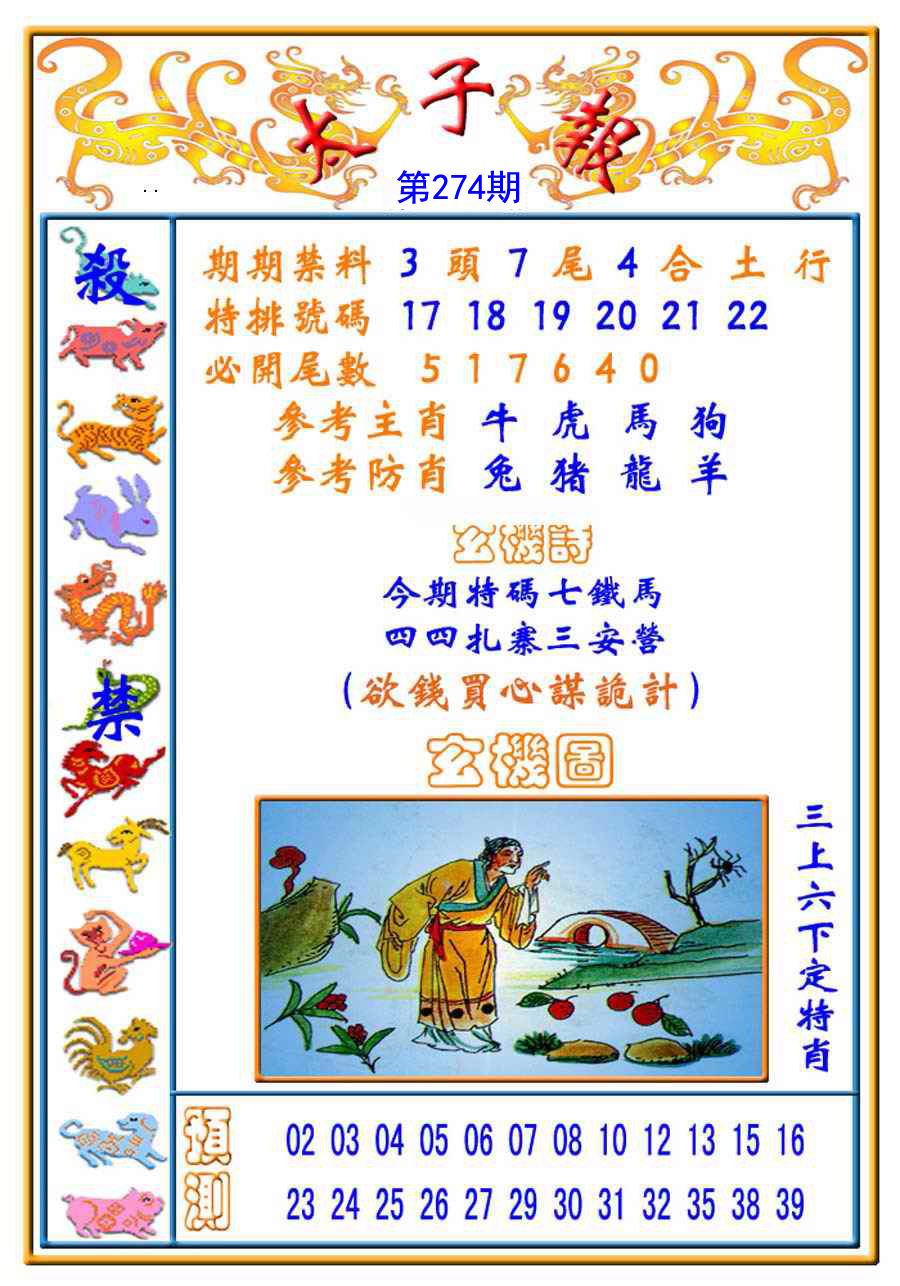 272期:神奇七尾【7 6 4 0 2 8 9】开:猪07 |