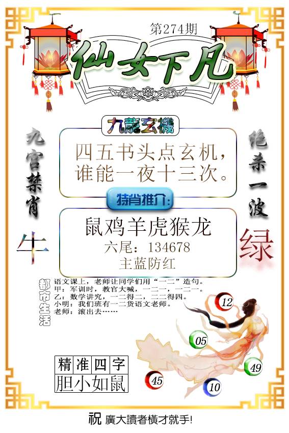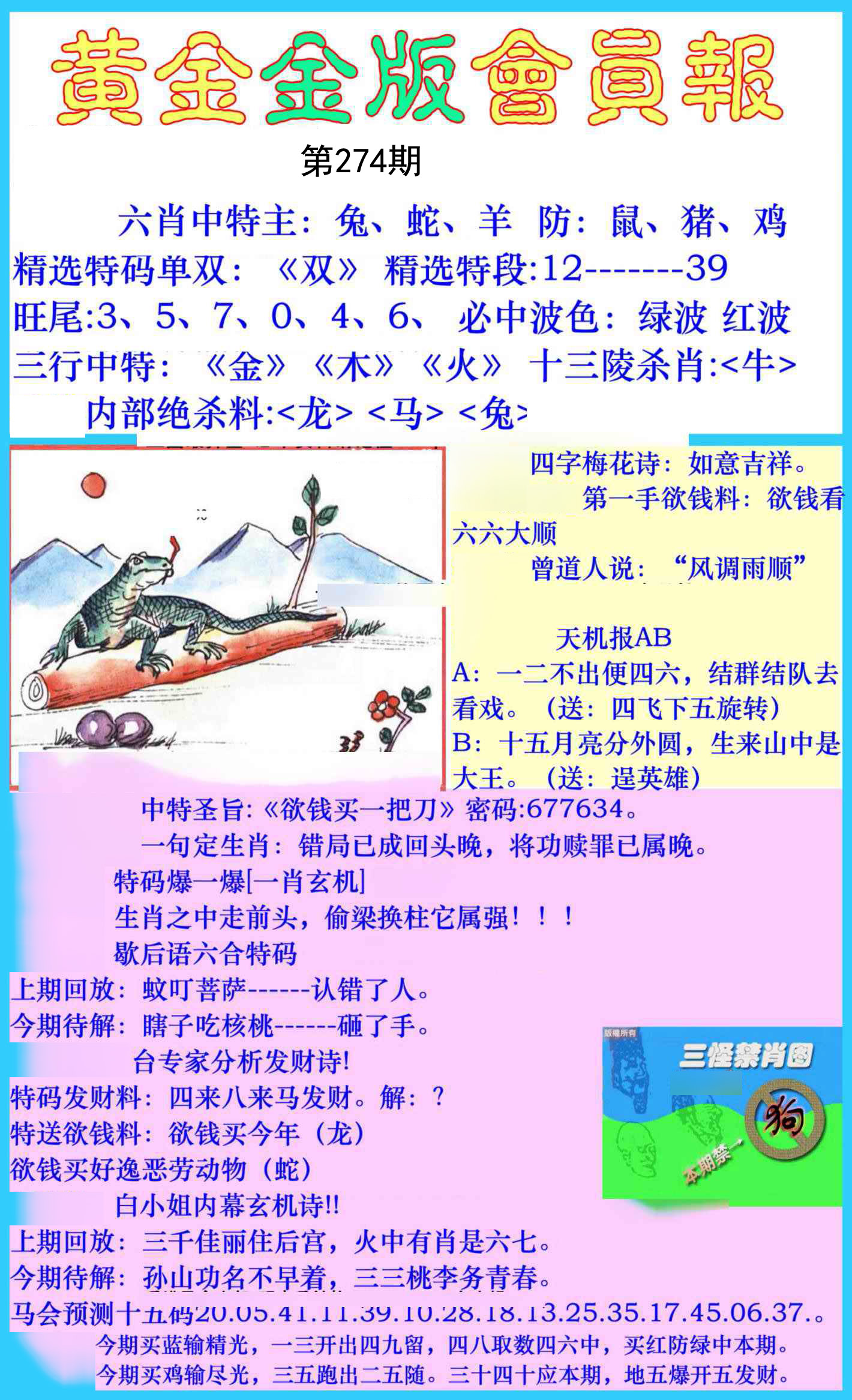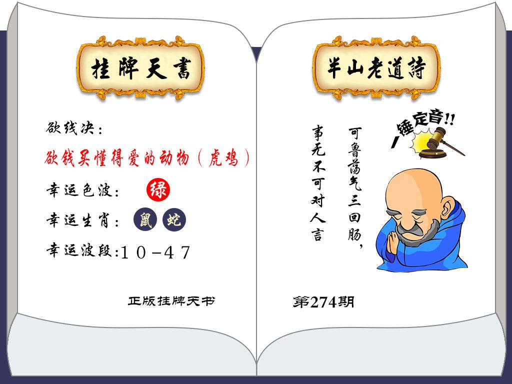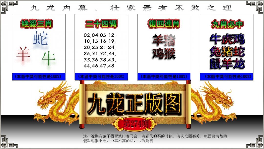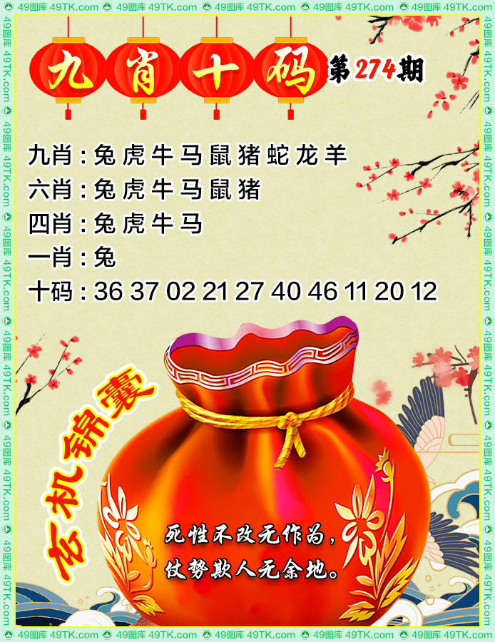 274期推荐六肖:<蛇鸡羊牛虎马>内幕资料请大胆下注! | ||
