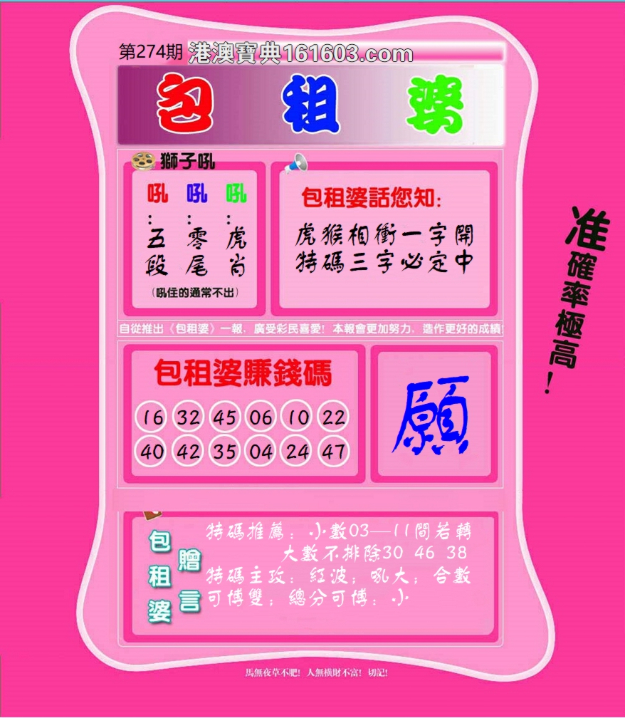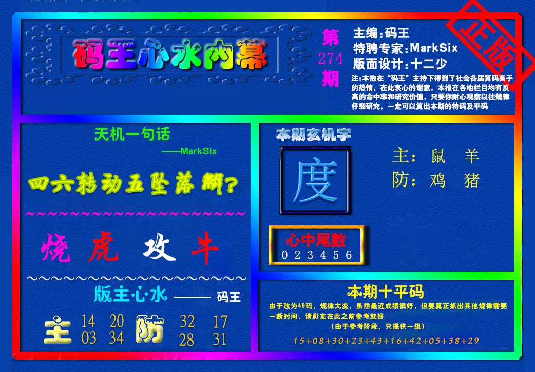 274期原创24码中特开:?00 32,38,22,45,35,39,21,31,14,05,36,15 41,25,26,40,47,11,02,10,04,24,01,06 |