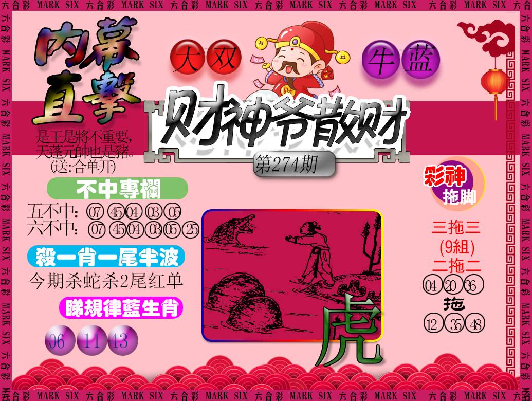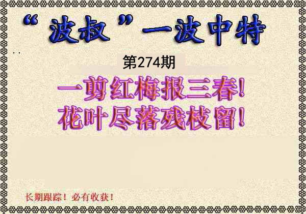 274期:《主攻:内幕规律平特肖:<狗>下50万》! | ||